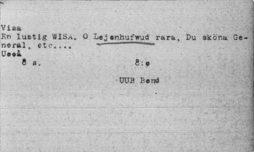 //// Visa //// En lustig WISa. O Lej snhufwud rara» Du sköna General, etc.,.» — Usoa //// 8 s. //// UUB Bend ////