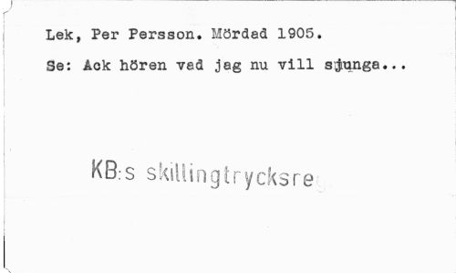 //// f //// Lek, Per Persson. Mördad 1905. //// Se: Ack hören vad jag nu vill sjunga... //// KB:s skiltingtrycksre ////