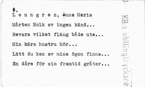 //// Lenngren, Anna Maria //// CD //// Mårten Holk av ingen känd... Bevars vilket fläng både ute... Min kära hustru hör... //// Lätt du kan av mina ögon finna... ar En dåre för sin framtid gråter... //// Q. //// >• i Ui —1 | //// l. CD 1 ////