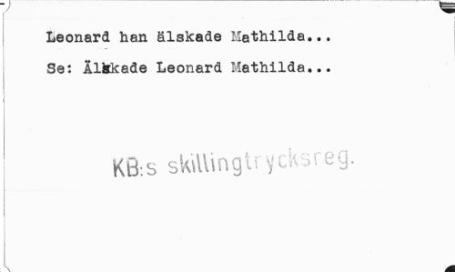 //// Leonard han älskade Mathilda... Se: Älkkade Leonard Mathilda,.. //// KB-.s sk\llingtryekv;reg. //// j ////