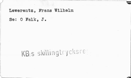 //// Lewerentz, Frans Wilhelm Se: O Falk, J. //// KB:s skiUingtrycksre ////