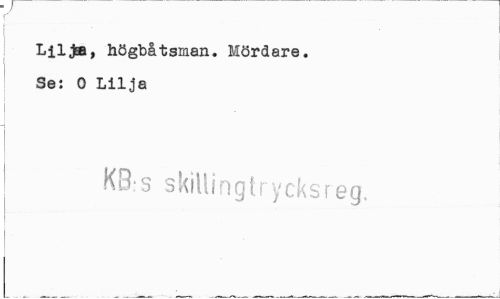 //// Lilj», högbåtsman. Mördare. Se: O Lilja //// i KB:s skillingtrycksreg, //// i ////