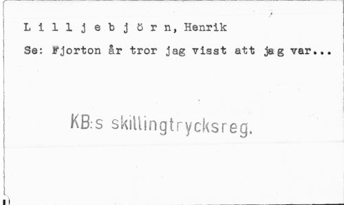 //// Lilljebjörn, Henrik //// Se: Fjorton år tror jag visst att jag var... //// KB.s skillingtrycksreg. ////