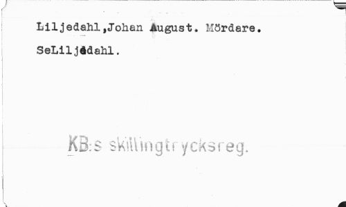 //// Liljedahl,Johan August. Mördare. SeLiljådahl. //// i //// KB:S stöttingtrycksreg. ////