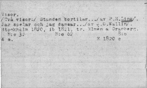//// Visor. //// /Två vi ser:/ Stunder? torti lar.../av P.H.L^jg/. //// Jag spelar och jag dansar. . ./av ^ .0 .Vfallirv -Stockfecla lfi<C, ii 1821, tr. 5:lmén <k. Granberg. //// f';o 3? :o 6? B:o //// 4a. k i8?e c ////