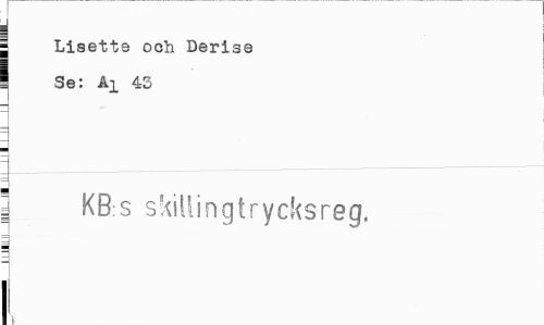 //// [ Lisette ooh Derise //// ¦ Se: Ax 45 //// i KBs skillingtrycksreg. i ////