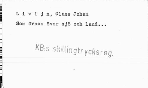 //// I L i v i j n, Claes Johan //// Som örnen över sjö och land... //// 3 KBs skillingtrycksreg. //// m //// I ////
