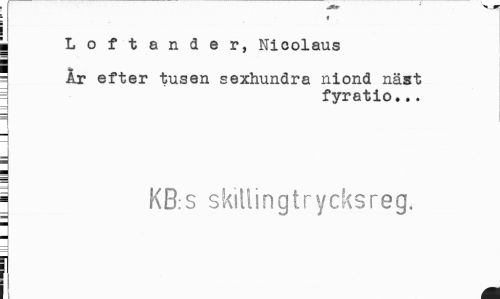 //// i //// I Loftander, Nicolaus //// I t //// = Ar efter tusen sexhundra niond näst //// i fyratio... //// i KB:S skillingtrycksreg, //// f //// i //// A ////