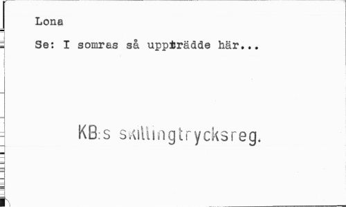 //// Lone //// Se: I somras så uppträdde här... //// KB:s s^illingtrycksreg. //// k ////
