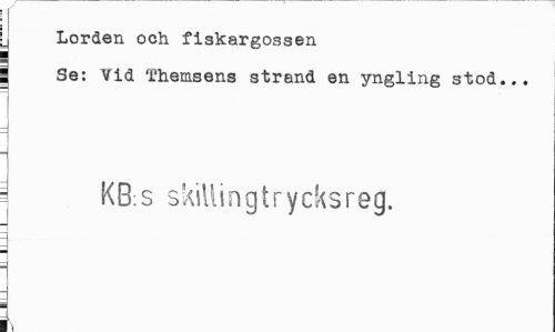 //// Lorden och fiskargossen //// i //// 1 Se: Vid Themsens strand en yngling stod... //// = KB.s skilli n g t r y eks reg. ////