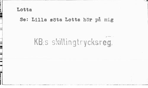 //// Lotta //// i //// ! Se: Lilla söta Lotta hör på mig //// j KB;3 skillingtrycksreg, ////