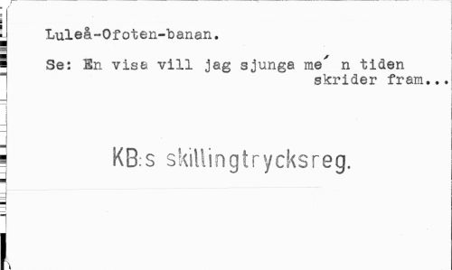 //// Luleå-Ofoten-Toanan. //// ¦ Se: En visa vill jag sjunga me' n tiden 1 skrider fram... //// J //// i KB:s skill i n g t r y eks r e g. //// i l ////