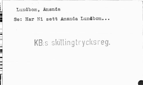 //// Lundbom, Amanda j Se: Har Ni sett Amanda Lundbom... //// " KB:s skillingtrycksreg. //// i //// r //// M ////