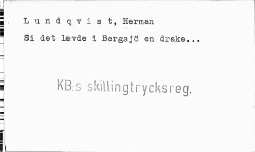 //// s //// I "Lundqvist, Herman //// 1 Si det levde i Bergsjö en drake... //// q //// 1 KB:S skillingtrycksreg. //// (t-l\ ////