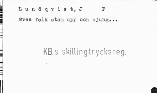 //// ( Lundqvist,J P //// j Svea folk stäm upp och sjung... //// ; KB:S skillingtrycksreg, //// m ////
