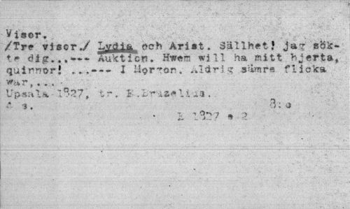 //// Visor. //// /Tre vi ser./ Lydia neh Arist. Sällhet i ja? //// te dig...---Xukticp. Hweré will ha mitt hjerta, //// quirnor! ...---I Härrör. .s&nr* flicka //// r, . . . • //// Upsala I°'27, tr. I; .L-riMli-i3 . //// T //// * ,. o: a //// 5. 1^7 » ? ////