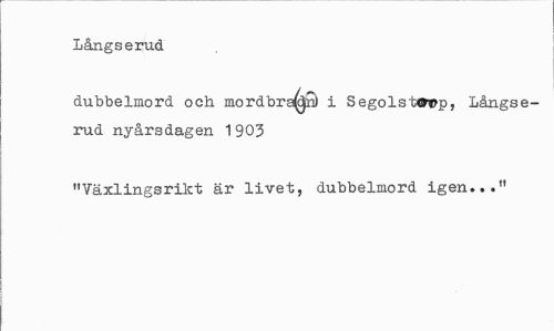 //// Långserud //// dubbelmord och mord brakat i Segolstaop, långse-rud nyårsdagen 1903 //// "Växlingsrikt är livet, dubbelmord igen..." ////