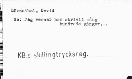 //// J Löventhal, David i //// i Se: Jag versar har skrivit mång 1 hundrade gånger... //// i //// i //// : KB;S skiUingtrycksreg. i ////