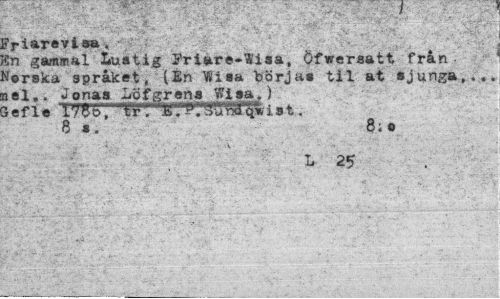 //// ' I* % " ' " //// ?riarevisa. //// In gammal Lustig Friare-Wiaa, öfwersatt frän-tforaka sprakat, (In Wiaa börjas til ai sjunga,... sel.. Jonas LÖfgrens Wisa.) //// jene vm", . //// 8 s. 8; © //// ¦ i- . ' . :*V . I» . ////
