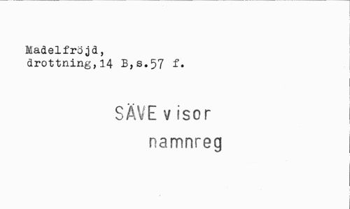//// Madelfröjd, //// drottning,14 B,s.57 f. //// SÄVE visor namnreg ////