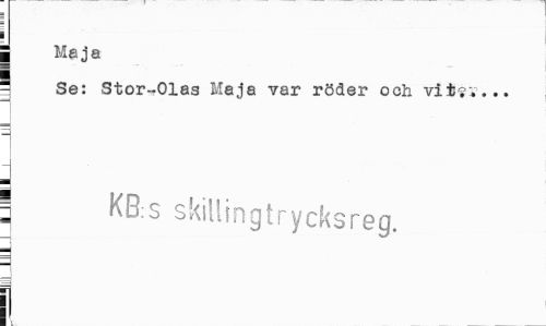 //// i //// j Meja //// " Se: Stor-Olas Maja var röder och vit?v... //// a //// j KB;s skillingtrycksreg. //// r i i ////