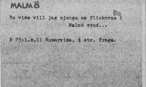 //// MAIM& //// •¦ p. //// Bn visa vill jag sjunga om filekorna i' //// Malmö stad... //// B 73:1,b.11 Husarvisa. i str. fråga. //// ' - * v , ' -' - v \ ' i - V 1 ////