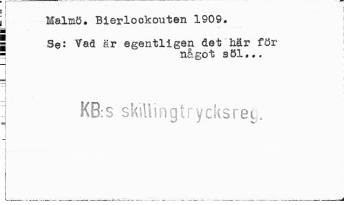 //// ! //// m Malmö. Bierlockouten 1909. //// I Se: Vad är egentligen det här för //// ¦ något söl... //// 1 //// 1 KB:S skillinatrycksrec //// j //// ] ////