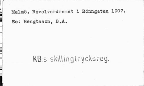 //// j Malmö. Revolverdramat i Rönngatan 1907. - Se: Bengtsson, B.A. //// KB.s skillingtrycksreg. //// i ////