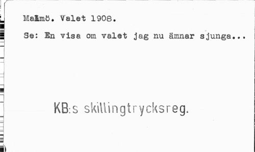 //// j Maåmö. Valet 1908. //// | Se: En visa om valet jag nu ämnar sjunga... //// 4 i //// KB:S skillingtrycksreg. ////
