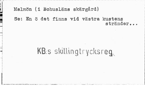 //// Malmön (1 Bohusläns skärgård) //// i //// i Se: In ö det finns vid västra kustens //// h stränder... //// -i //// i //// J //// : KB.s skUUngtrycksreg ////