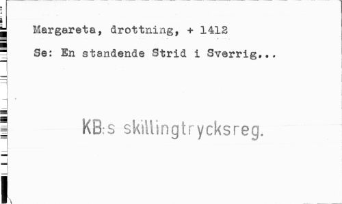 //// I Margareta, drottning, + 1412 //// | Se: En standende Strid i Sverrig... //// 1 //// I' //// 1 KB.s skillingtrycksreg. //// i ////