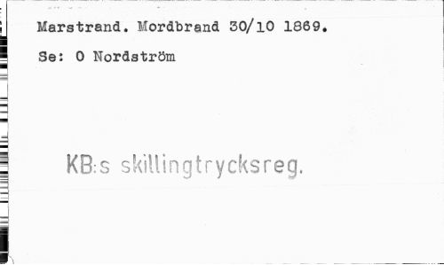 //// Marstrand. Mordbrand 30/10 1869. //// I Se: 0 Nordström //// g //// ] //// 3 //// 4 //// 1 KB:S skiilingtrycksreg, //// ] //// 1 ////