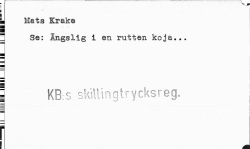 //// ¦ Mats Krake 1 //// " Se: Ängslig i en rutten koja... //// ¦ //// i KB.s skillingtrycksreg. ¦ ////