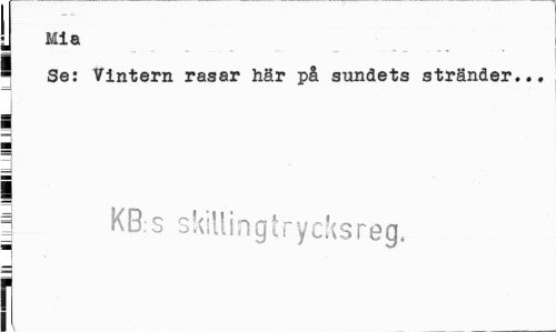 //// j Mia //// 1 Se: Vintern rasar här på sundets stränder.., i //// j KB:S s killin g t r y eks reg. ¦ ////