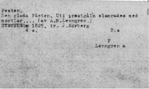 //// Festen, //// Den glada Fästen. Uti prsstgaln slamrades med mortlar,,., (av A.M.Lenngren .) STWTOSlar 1825, tr. 2 .Hörberg //// 4 s. . 8; • //// F //// Lenngren a //// ''-Ii-' V: ¦ - . ; - ' ' • " . • ////
