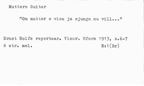 //// Mutters G-uitar //// "Om mutter e visa ja sjunga nu vill..." //// Ernst Rolfs repertoar. Visor. Hfors 1913, s.6-7 6 str. mel. E: 1(Br) ////