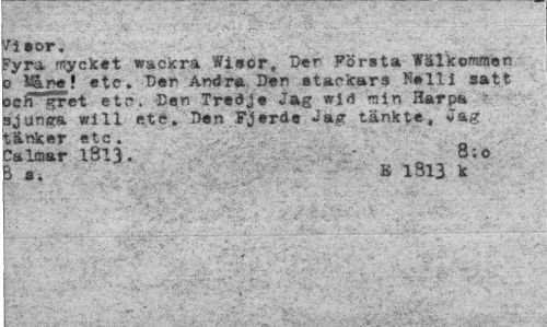 //// f/ieor. //// Fyra mycket »ackra Wi«or, Der Första Välkommen P Andra Den etaclcars Kall i satt //// och gret etc. Den Tredje Jag vrid min Harpa ¦ bjunsa will ete. Den Fjerde Ja# tänkte, jar tärdc-er etc. . , //// Calmar 1313. g;o //// & a- B 1B13 k* ////