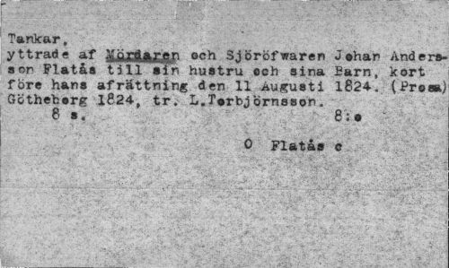 //// Tankar, //// yttrade af gärdar en och Sjöröfwaren Jehar Ande resor Flatåa till »Tr. hustru och sina £arn, kort före hans af rättning den 11 Augusti 1824. (Prosa; Göthefcsrg 1824, tr. L.Terbjörnsson. //// 8 •. 8: • ; //// 0 Platå» c //// | ~ -v ' ' • v -V, ////
