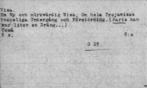 //// , M i , //// Sn Ny och märkvärdig Wisa, Om hela Trojaruaxe Ynckeliga Undergång och Forstörning.(Paris han war liten en Dräng...) //// Uooa Q //// 8 3. 8;0 //// G 25 //// « ////