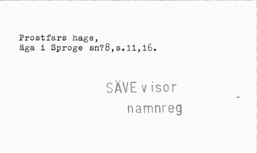 //// Prostfars hage, //// äga i Sproge sn?8,s.11,16. //// SÄVE visor namnreg ////