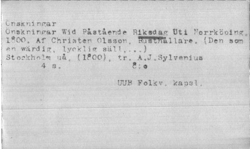 //// C n sk ni n.tar //// Gnskninrar Wid Påstående Rik ad a<r Uti Norrkcoin? I ••00. Af Christen Olason,, xSTOPallärs, (Den som en wärdig, l yr kl i1? säll , ? . .) Stockholm uå, (lfOO)„ tr. A.J. SyIveniua //// UUB Folk v, kaosl, //// I ////