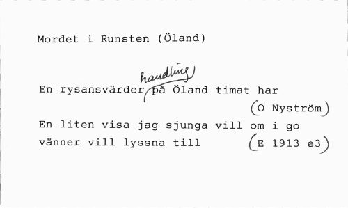 //// Mordet i Runsten (Öland) //// En rysansvärder^-^a^S^nd timat har //// (o Nyströmj En liten visa jag sjunga vill om i go vänner vill lyssna till ^E 1913 e3) ////