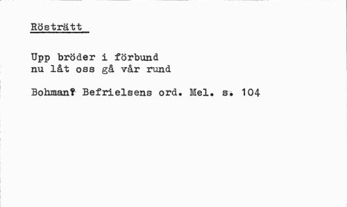 //// Rösträtt //// Upp bröder i förbund nu låt oss gå vår rund //// Bohman? Befrielsens ord. Mel. s. 104 ////