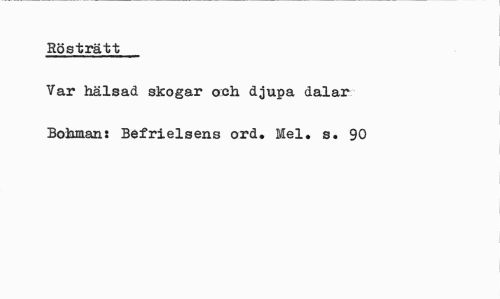 //// Rösträtt //// Var hälsad skogar och djupa dalar Bohman: Befrielsens ord. Mel. s. 90 ////