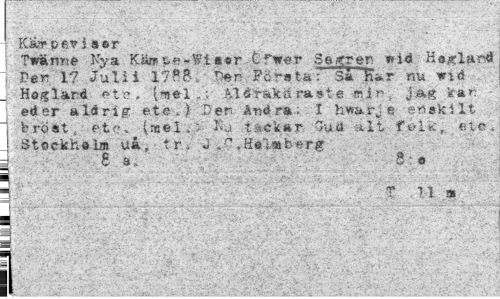//// K&r pevi »sr //// Twänne Kl^^-wi.or C-wer Se^ren »id H^få //// , ger 1/ Julii 1 V?8 ^r PcrstarsTSar nu wid //// - H^lard etc. (mel.; Aldrakäraete min, jag kar //// - er »ldrig etc J Den Andra; I hwar.e enskilt |.ro st etc, (ra el.; K,, tackar JSu-d alt föl k, etc btocfcnsijji ua, tr , j .".Hel» berg //// i c a. " » a //// g w > " //// T n M //// i ////