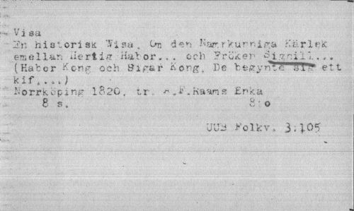 //// •• Vi sa //// historiss '.Visa » On den Narrkunniga Kfcrl*?* en; el lar. iiert is: Hålor... och Fröken <3ignill.,«• (Habor Kon? och 8igår *>ong, Be tfcgyn*"'<§ SI"? ett k i f , . »i J //// Norrköping 1820, tr ^ .F.Hav,s £nka 8 s. 8 o //// UUii Folk v » 3-105 ////