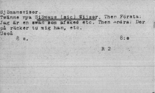 //// 3j Ömansvisor. //// rvränne nya jlgg^^^ ), f|jg.gf Then Jörsta; J"ag ar en »wan som afsked etc, Then *ndra; Der på räcker tu mig han, etc. Jooå //// 8 s. 8:0 //// R 2 ////
