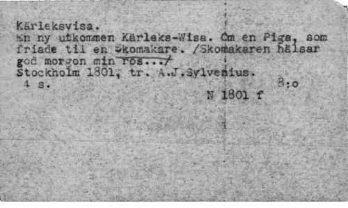 //// K4rleksvisa, //// fl;r1 ny utkommen Krleks-Wisa. m en Piga, som friade til en.;;komakare. /3korktakaren hlsar god morgon min-r5U7777L //// Stockholm 1801, tr, //// s. //// N 180. f ////