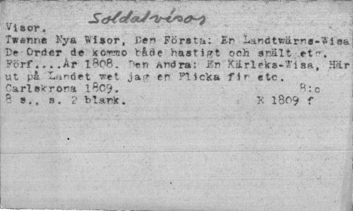 //// Sft/ci&Jtrl***^ //// visor. //// Tw enrift Kya Wisor, Ben Första: Er Land tjärns-V* i sa Be Order de KOTmo både hastigt och ssalt etc. Förf.. ..Ar nen ^ridra: En Kärleks-T i sa, Här //// ut på Landet wet jas? en Flicka fir etc. Carl sk-röna l8C'>. B;c //// B 9., s. 2 blank. K 1809 f //// . ... . . "i ////