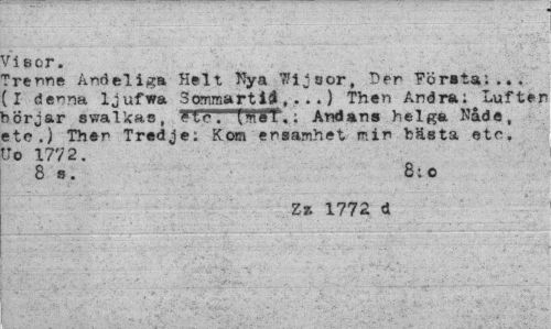 //// ^isor. //// rrenne Andeliga Helt ftya flisor, Der Företa;... (I de^na ljufwa Sommartid...) Then Andra: Lufter börjar swalicas, éteTT^ST,.: Andans helga Nåde, sto.) Then Tredje: Kom ensamhet min bästa etc, 'Jo 1772. //// 8 s. 8:0 //// Zz 1772 d ////